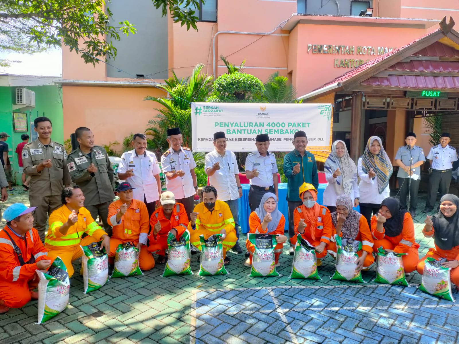 MAKASSAR, HARIAN.NEWS – Sebanyak 216 orang petugas kebersihan, dan petugas drainase Kecamatan Tallo, menerima bantuan paket sembako dari Badan Amil Zakat Nasional BAZNAS kota Makassar bertempat di Halaman Kantor Kecamatan Tallo, Jalan AR Hakim Kota Makassar, Rabu (12/04/2023).