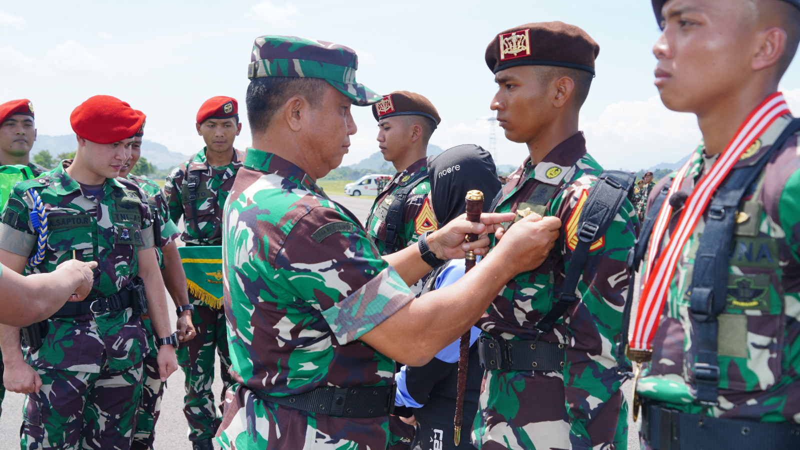 Gubernur Akmil sematkan pin win Ara dasar kepada taruna usai mengikuti latihan terjun para dasar. (Ft. Penakmil/Mohis/HN)