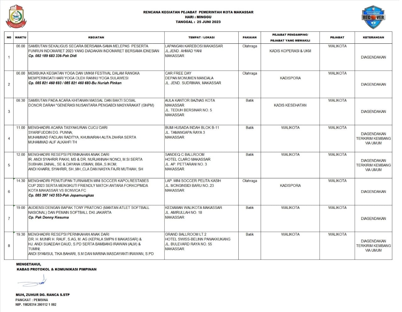 Untuk mengetahui agenda Pemkot Makassar hari ini, berikut dilampirkan :