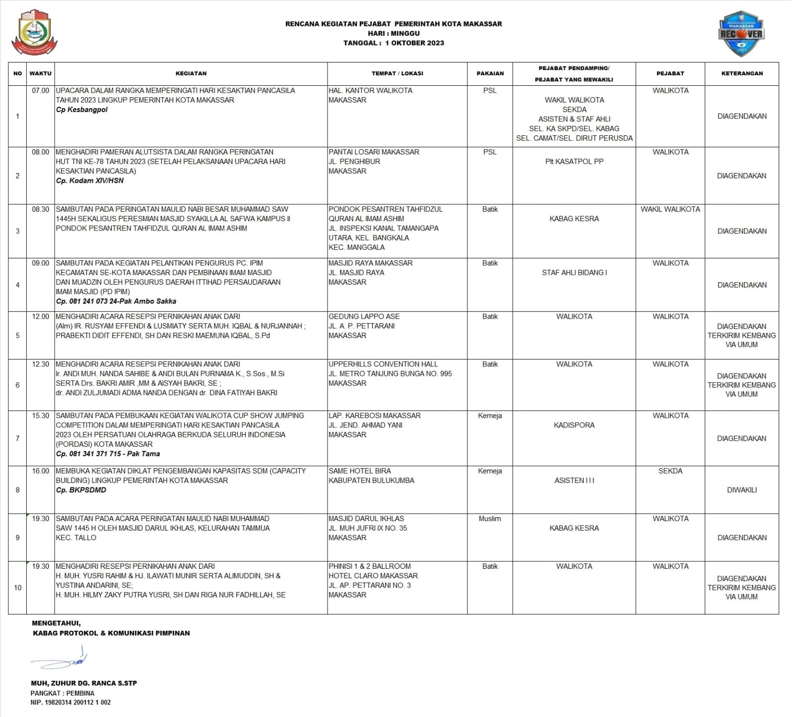 Setelah semua dijadwalkan, barulah Kabag Protoko & Komunikasi Pimpinan, Muh Zuhur, Dg Ranca S.STP bertandatangan tertanda resminya agenda Pemkot untuk esok harinya.