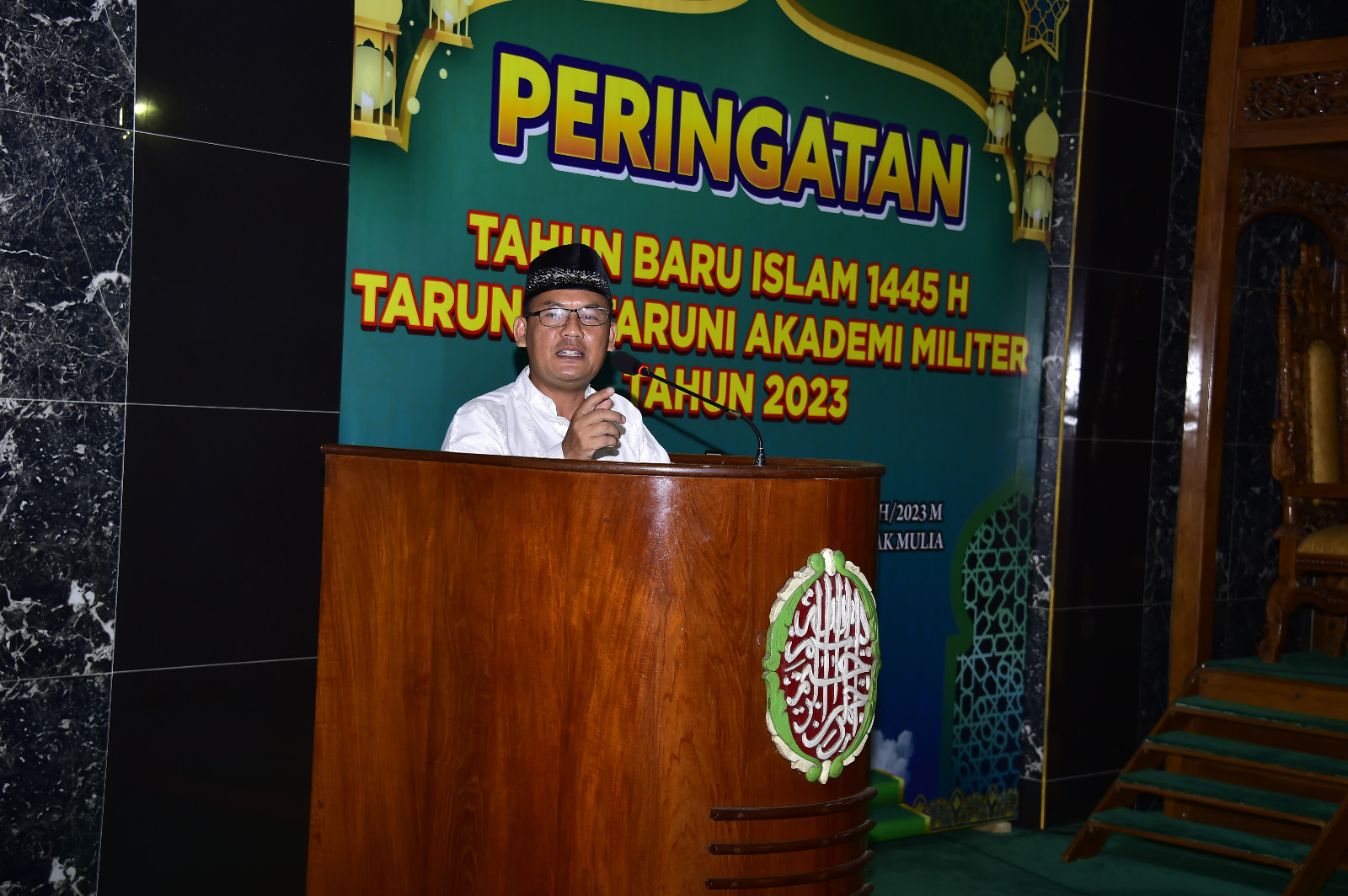 Bintal Akmil menyampaikan ceramah agama saat perayaan tahun baru Islam yang digelar Taruna, Taruni dan organik Akmil. (Ft. Mohis/HN)