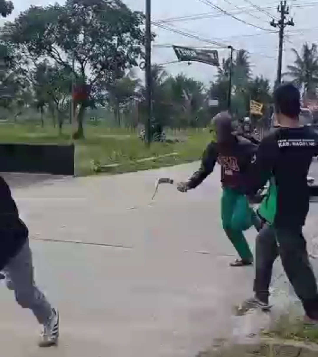 Dalam video yang beredar, pria remaja yang membawa clurit sambil mengejar lawannya menggunakan jaket, tutup kepala bersandal jepit. Pria ini lari sambil mengayunkan senjata tajam yang digenggam mengejar lawannya. Beruntung dalam kejadian itu tidak ada korban jiwa. Namun seorang pelajar dari SMK Muhammadiyah Salam tersebut mengalami luka gores saham dibagian lengan atas.