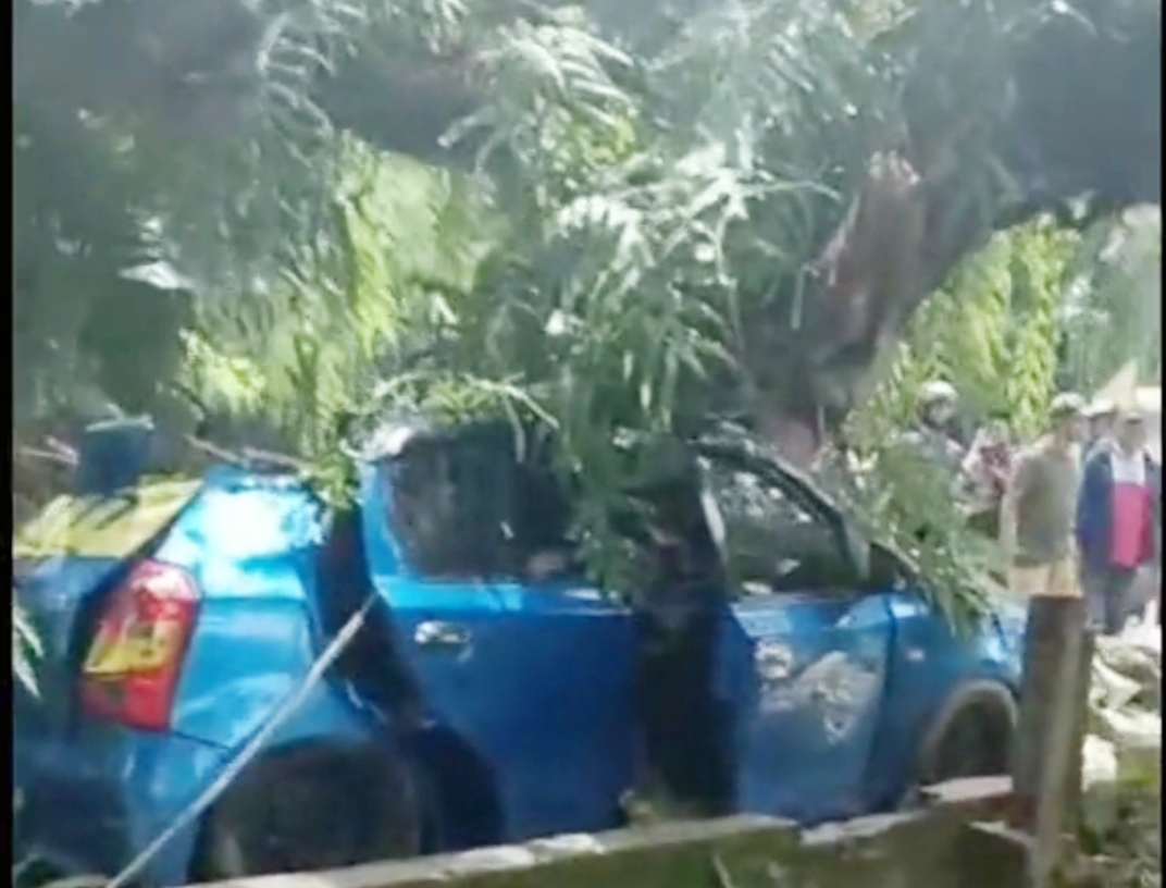 Kemudian, tiba – tiba pohon besar tersebut tumbang dan menimpa mobil yang dikendarai korban yang saat itu berada didalam mobil miliknya.