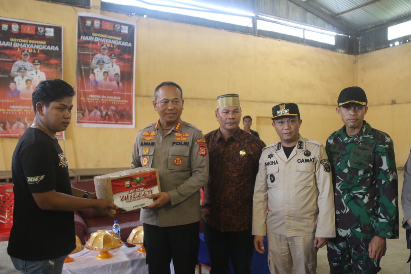 Bakti sosial dilaksanakan Kombes Pol Mokhamad Ngajib dalam rangka menyambut HUT Bhayangkara Polri ke 77 Tahun 2023, dengan menggelar kegiatan kerja bakti bersih bersih lingkungan di Kelurahan Tallo.