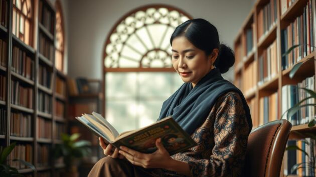 Seorang perempuan modern membaca buku yang melambangkan semangat belajar ala Kartini ||ilustrasiby_harian.news