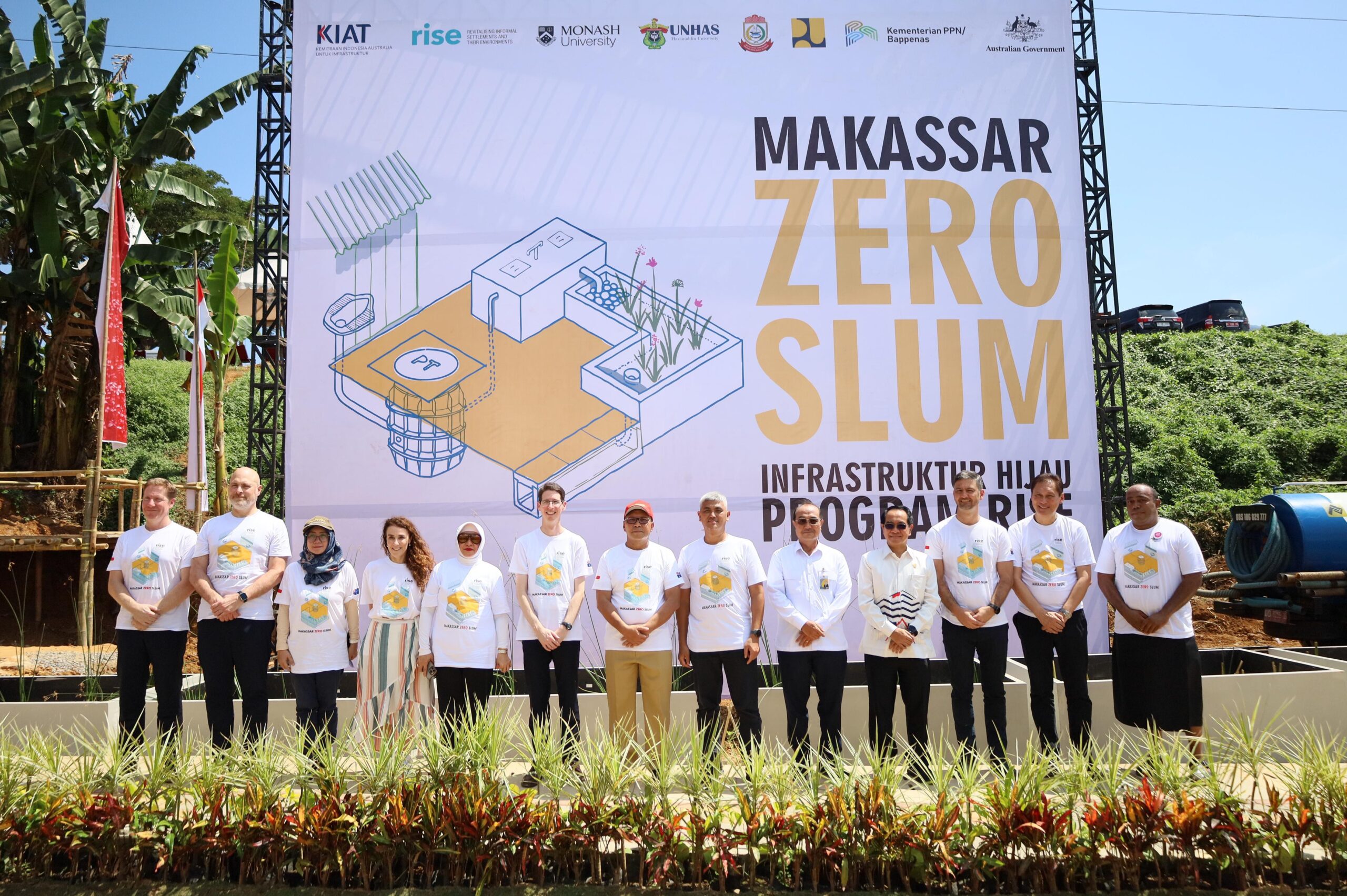 HARIAN.NEWS, MAKASSAR – Wali Kota Makassar Moh Ramdhan Pomanto bersama Konjen Australia Todd Dias meresmikan infrastruktur hijau program Revitalising Informal Settlement and their Environment (RISE) di Kelurahan Bulurokeng, Kecamatan Biringkanaya, Selasa (16/7/2024).
