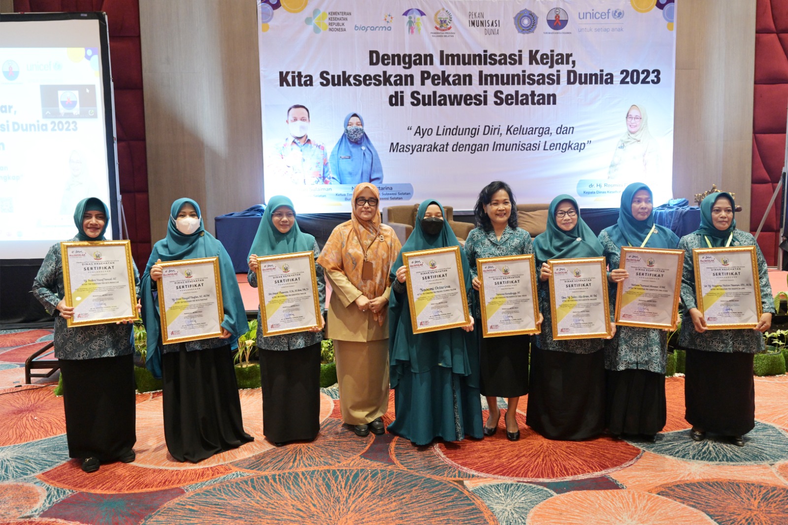 Penghargaan itu diserahkan langsung oleh Ketua TP PKK Provinsi Sulawesi Selatan, Naoemi Octarina, di sela-sela kegiatan pencanangan Pekan Imunisasi Dunia Tingkat Provinsi Sulawesi Selatan di Hotel Gammara, Selasa (09/05).