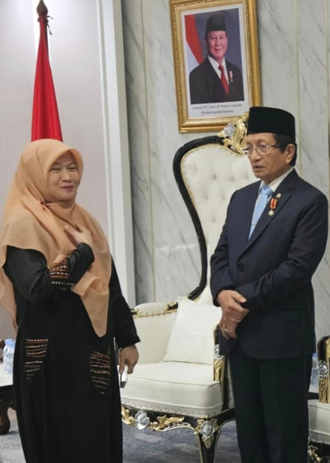 Dalam audiensi terpisah, Dekan FKIK UIN Alauddin terlebih dahulu bertemu Menteri Agama RI, Prof. Dr. KH. Nasaruddin Umar, MA, untuk menyampaikan visi penguatan FKIK PTKIN yang selaras dengan astacita Presiden Prabowo Subianto.