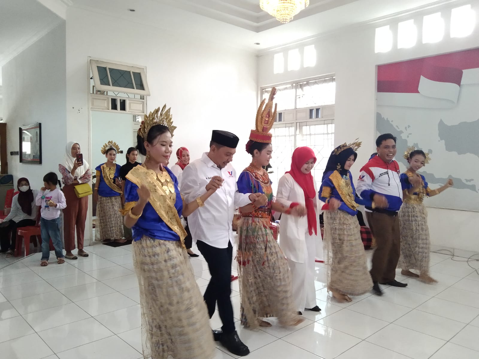 Rombongan pengantar H. Rudi berseragam kaos yang bertuliskan Partai Perindo yang jumlahnya sekira 70 orang. Kedatangan H. Rudi Ramli dan rombongan pengantarnya di sambut dengan tari Paduppa dan Tarian 4 etnis.