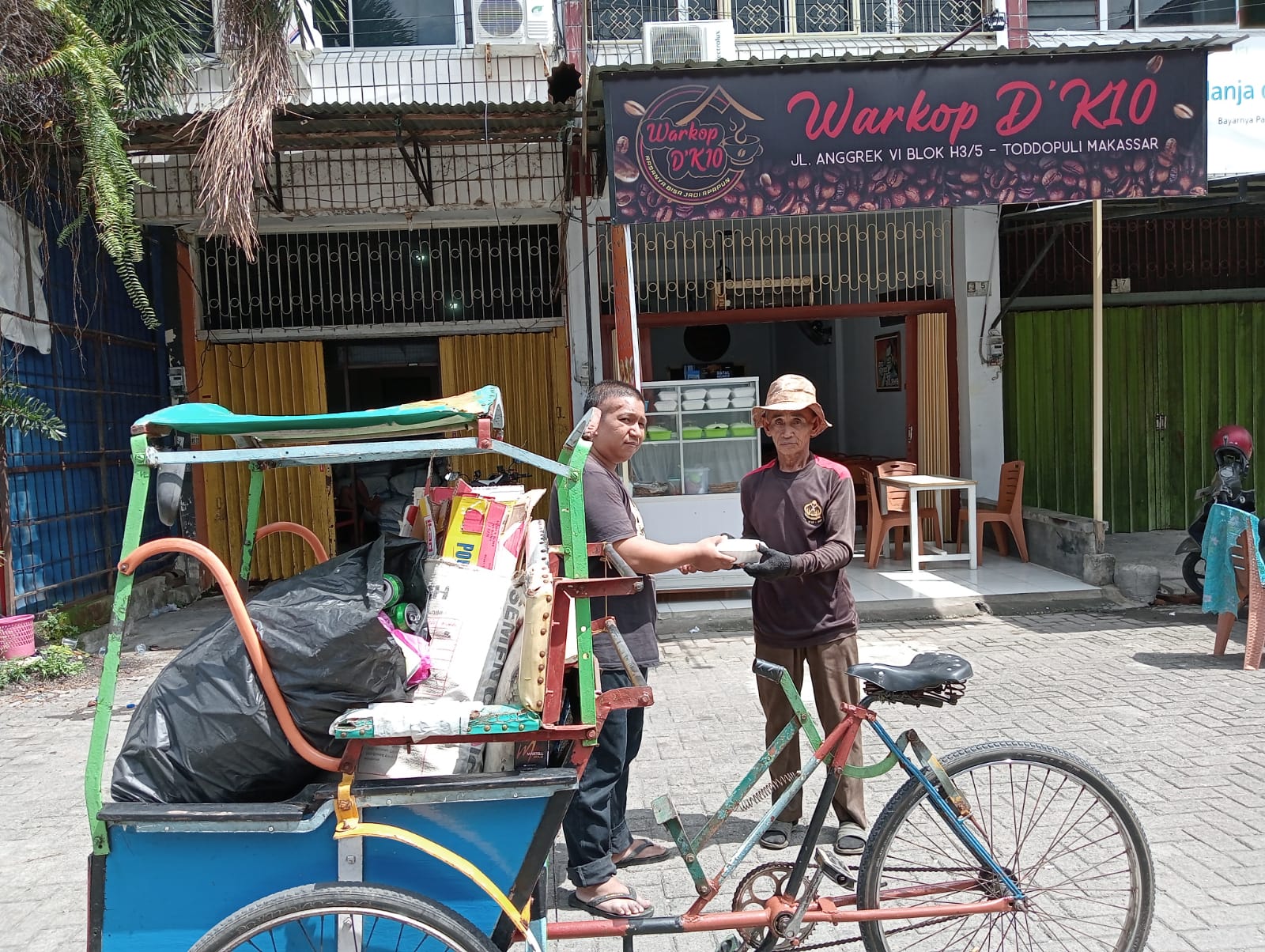 Hal ini pulalah yang dilakukan owner Warkop D’K10, Dhayat Daeng Kio bersama seluruh personel warkop yang terletak di Jl Toddopuli ini. Kegiatan Warkop D’K10 tiap Jumat ini bisa menjadi inspirasi bagi muslim lainnya yang juga ingin berbagi. Warkop D’K10 rutin berbagi nasi kuning gratis untuk semua pengunjung warkop dan sekitar.