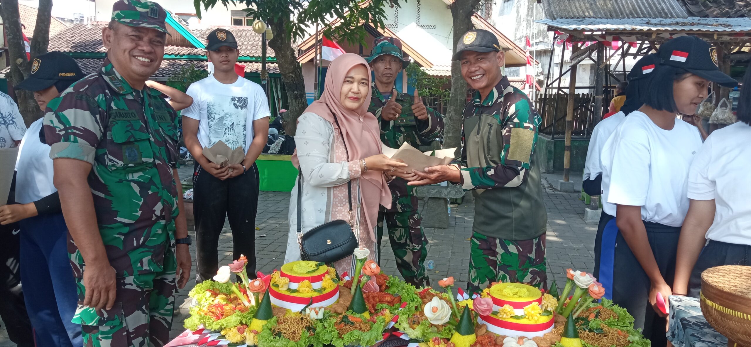 Kejutan mengesankan yang didapatkan dari Danramil, pelatih dan panitia agustusan itu tentu dilengkapi dengan berbagai properti ulang tahun pada umumnya, seperti nasi tumpeng dua baki. Namun, karena momentum agustusan, nasi tumpeng tersebut dihias dengan nuansa kemerdekaan dilengkapi dengan bendera merah putih.