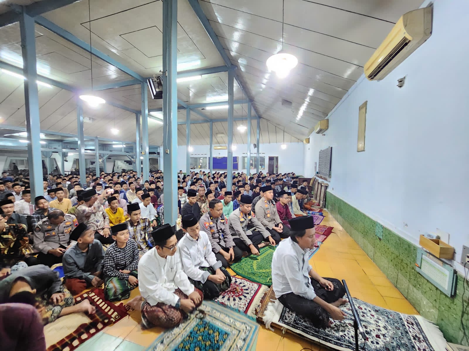 Kapolresta Magelang didampingi PJU Polresta Magelang sholat Magrib bersama ribuan santri API Tegalrejo dipimpin oleh Gus Yusuf. (Ft. Mohis/HN)