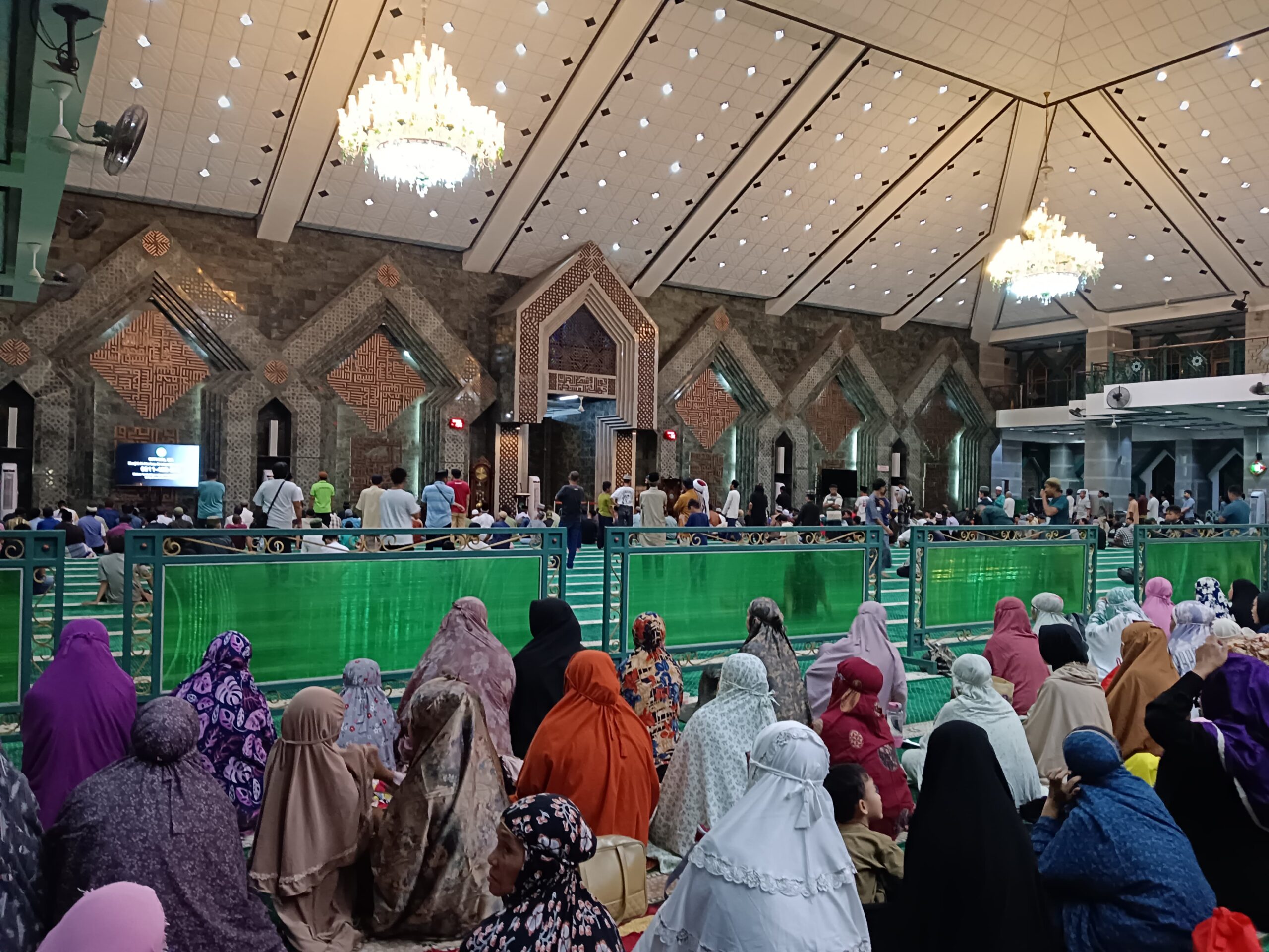 Sore jelang waktu berbuka puasa, suasana di Masjid Al-Markaz Al-Islami, Makassar, semakin hidup. Sejumlah pemuda sibuk beraktivitas di pelataran lantai satu.