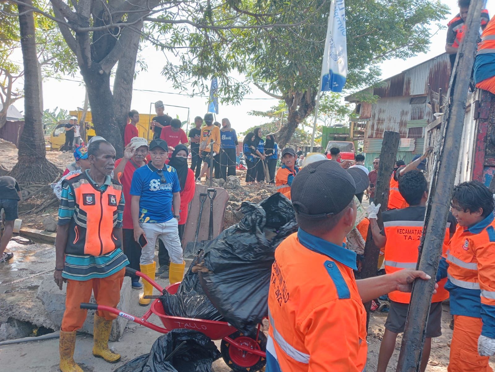 Camat Tallo, Alamsyah Sahabuddin bersama Pandawara Group melakukan bersih-bersih di Kampung Nelayan, Kelurahan Tallo, Kecamatan Tallo, Kota Makassar.