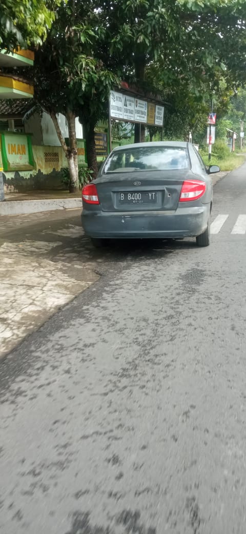 Mobil KIA yang menggunakan dua plat berbeda tersebut tertangkap kamera handphone saat tengah parkir di depan SDN 1 Tersan Gede pada Kamis, 2 Februari 2023 pukul 08.05 WIB.