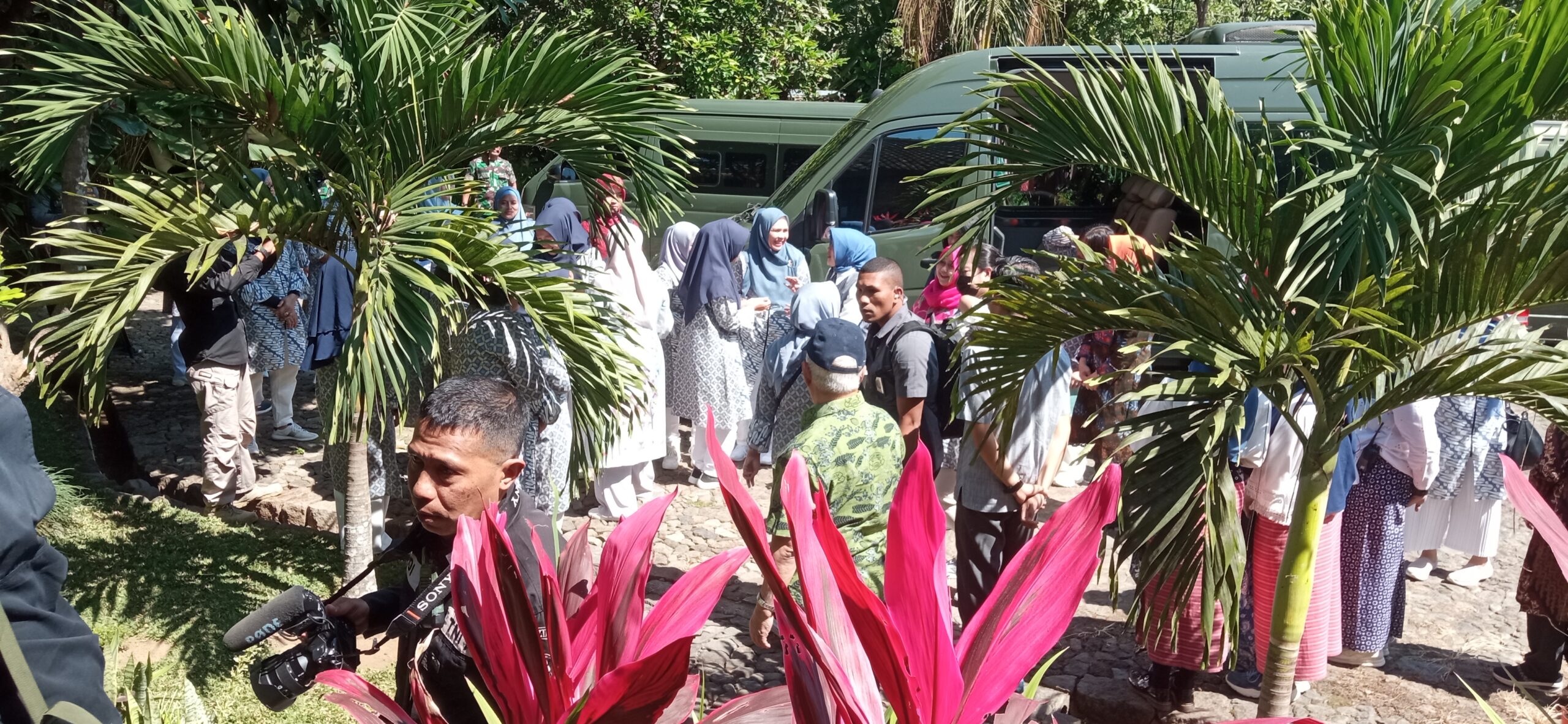 Ibu Rahma Dudung Abdurachman bersama rombongan meninjau jenis tanaman yang diolah menjadi bahan Tenun alam di Rumah Tenun Retota Sakti. (Ft. Mohis/HN)