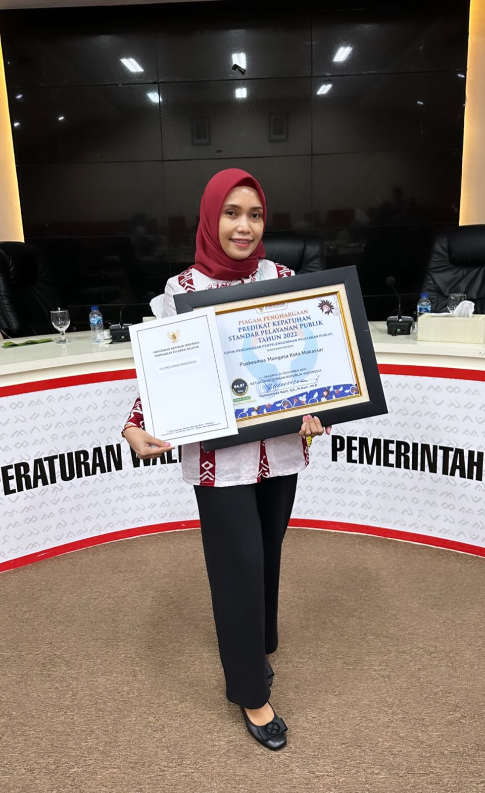 MAKASSAR, HARIAN.NEWS – Puskesmas Mangasa Makassar meraih piagam penghargaan predikat kepatuhan standar pelayanan publik tahun 2022. Penghargaan dan apresiasi ini diberikan kepada Ombudsman RI.