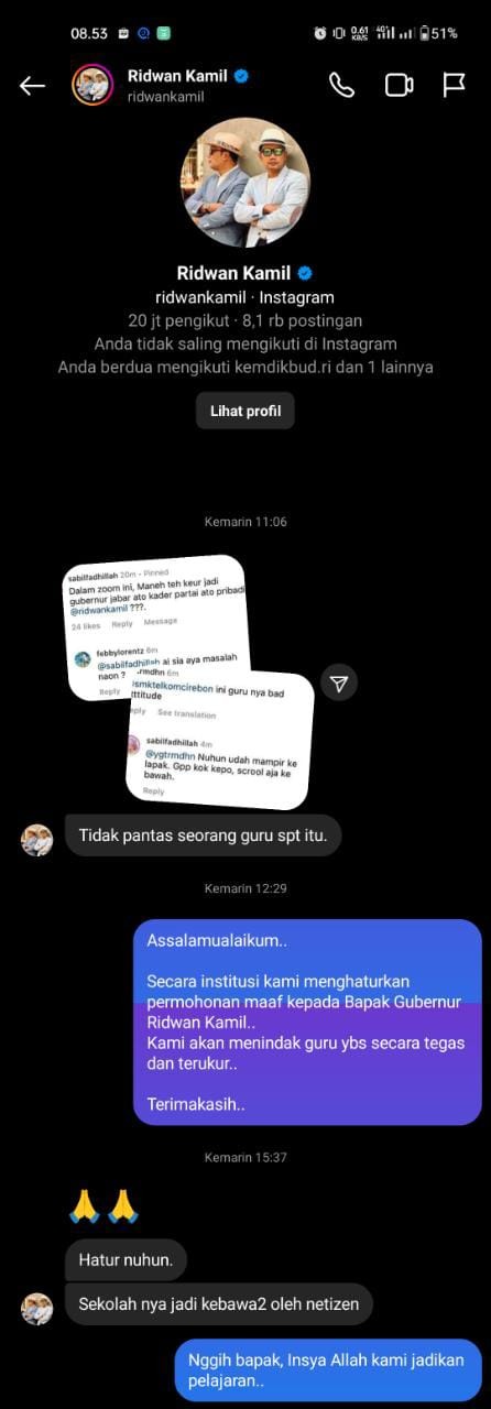 “Jika Kang RK benar-benar berpihak pada guru apalagi honorer, beliau tidak perlu sampai menghubungi langsung pihak yayasan. Apalagi tindakan yayasan tak lepas dari perasaan ga enak kepada Kang RK,” cetus Iman.