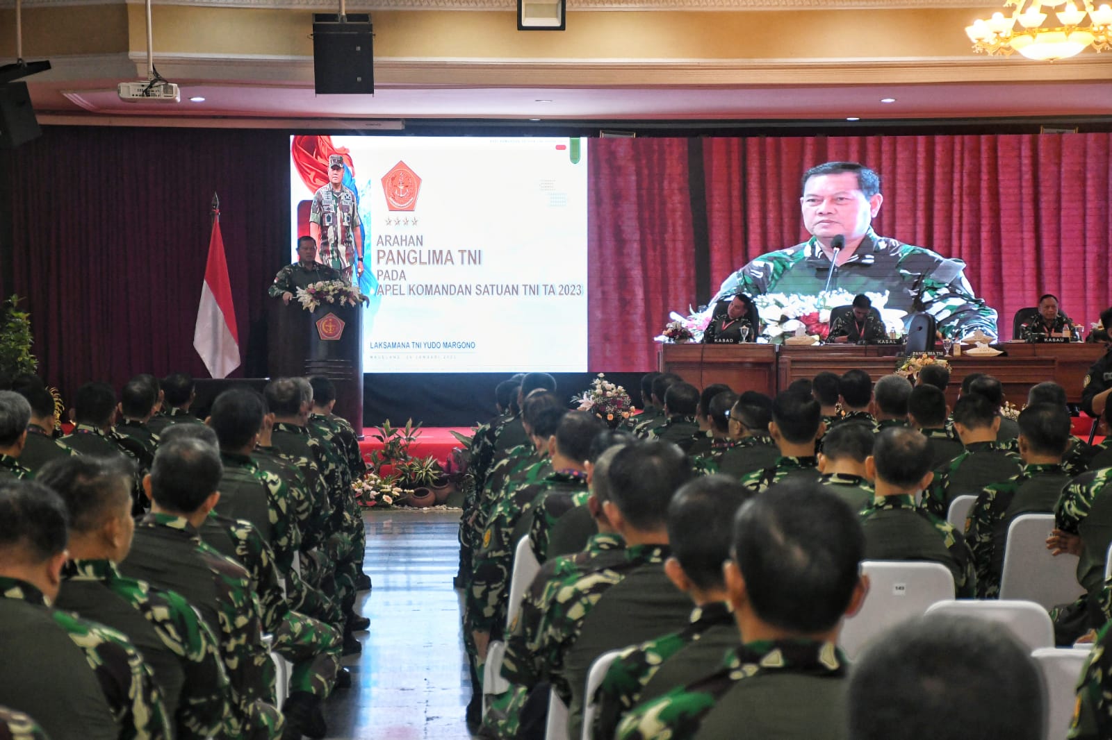 MAGELANG, HARIAN.NEWS -Panglima TNI Laksamana TNI Yudo Margono memimpin apel Komandan Satuan (Dansat) tahun 2023 di Gedung Lily Rochli, Markas Akademi Militer (Akmil). Sabtu (28/1/2023).
