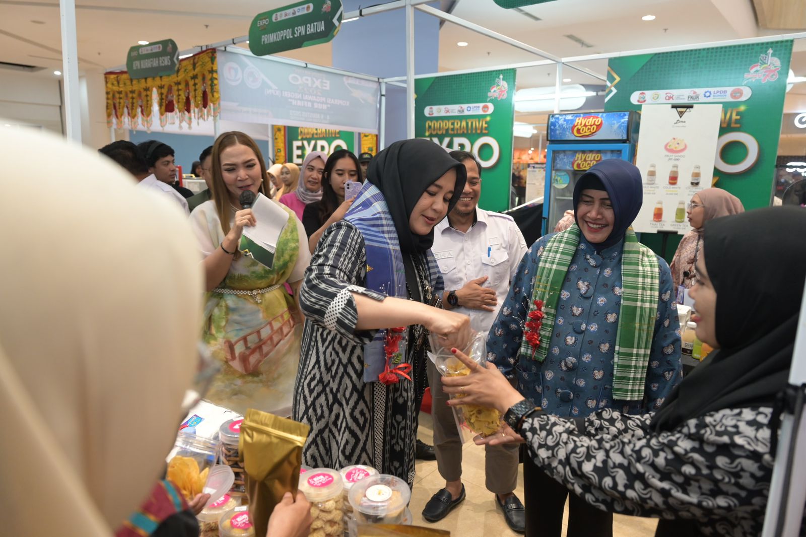Wakil Wali Kota Makassar Fatmawati Rusdi dan Ketua TP PKK Kota Makassar Indira Yusuf Ismail memborong sejumlah produk UMKM sebagai bentuk dukungannya kepada pelaku UMKM, usai membuka secara resmi Cooperative Expo 2023 di lantai basement Trans Studio Mal Makassar, Jumat (4/08/2023).