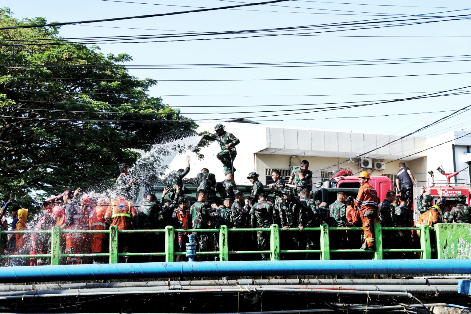 Pada kegiatan tersebut, TNI bekerja sama dengan unsur Pemerintah Kota (Pemkot) Makassar, seperti tenaga kebersihan, Dinas Pemadam Kebakaran, Satuan Polisi Pamong Praja, serta perangkat lainnya untuk membersihkan kanal di Jl. Andi Djemma, Selasa (08/10/2024).