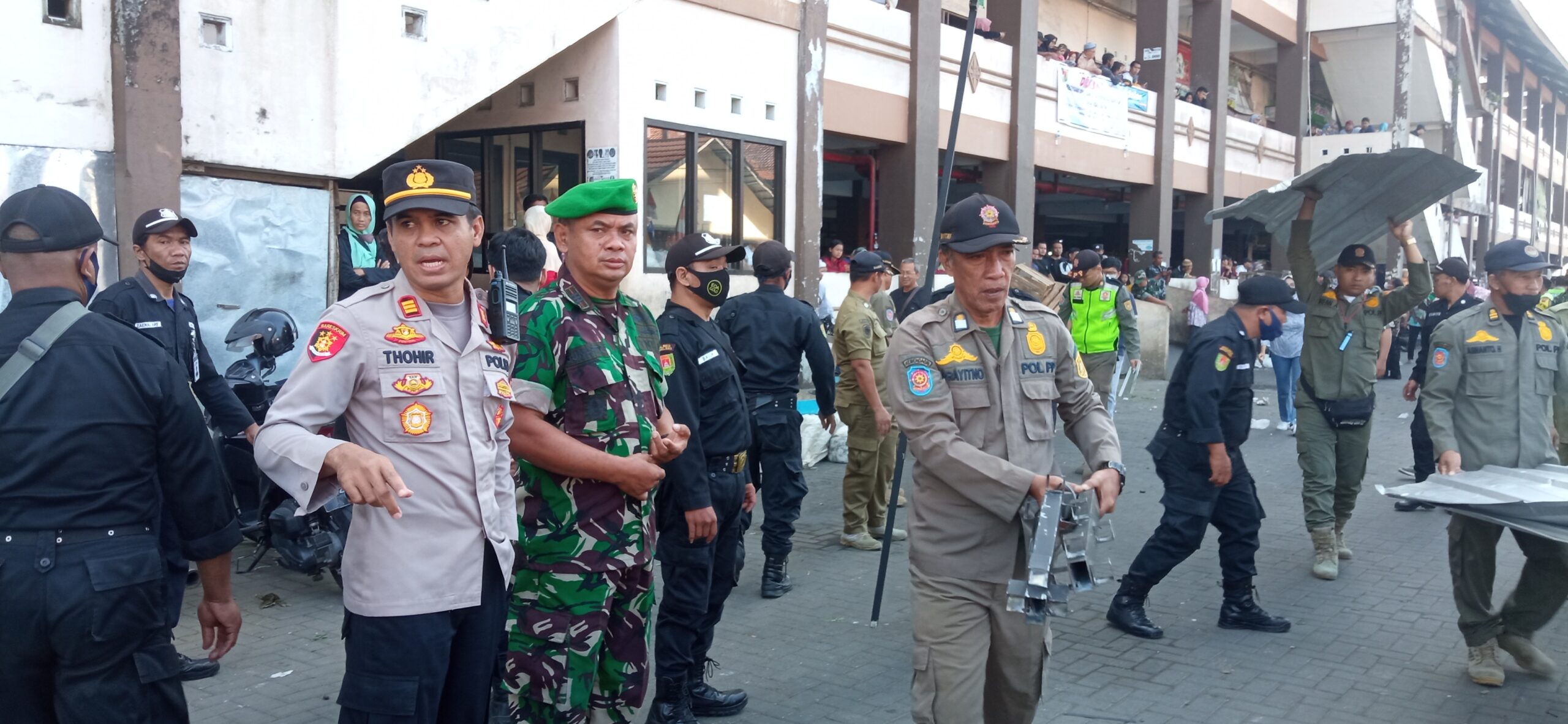 Danramil 14/Muntilan, Kapolsek Muntilan dan pihak Satpol PP ikut hadir mengawal penertiban pedagang di basement Pasar Muntilan, Sabtu, 5 Agustus 2023 pagi. (Ft. Mohis/HN)