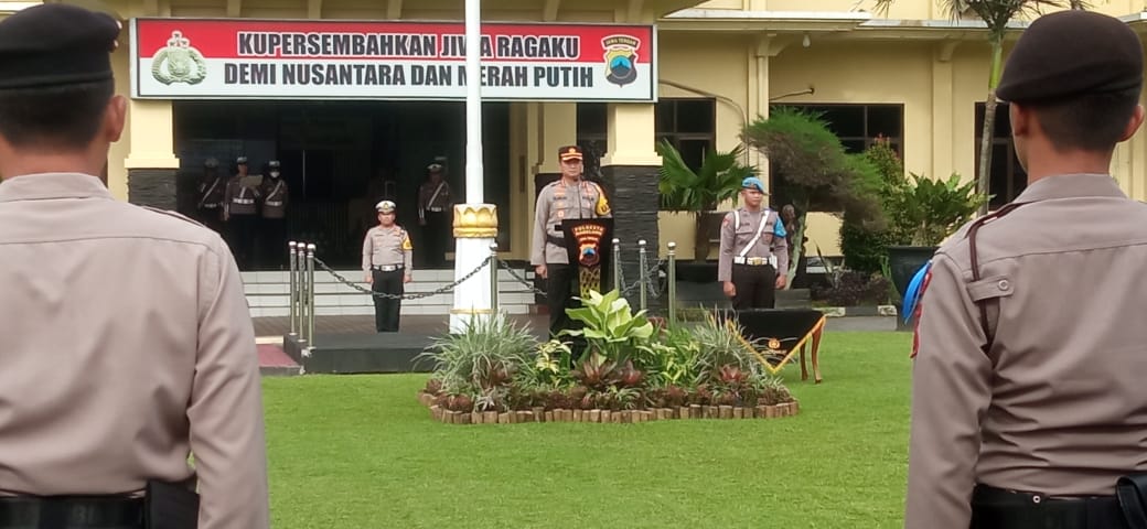 Saat memimpin apel gelar pasukan, Kapolresta Magelang membacakan sambutan tertulis Kapolda Jawa Tengah.