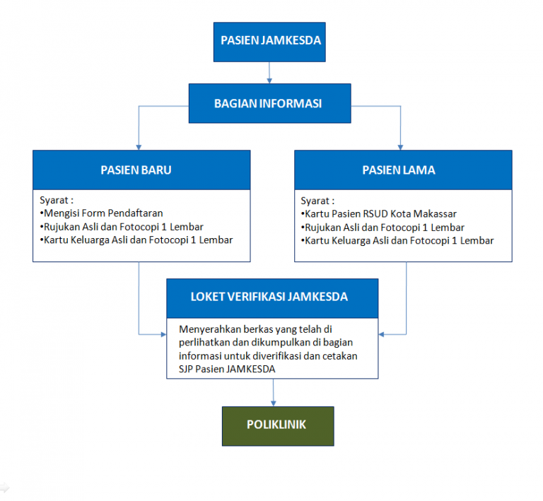 Bagi masyarakat yang ingin melakukan Rawat Jalan Pasien Jamkesda di RSUD Makassar berikut alurnya :