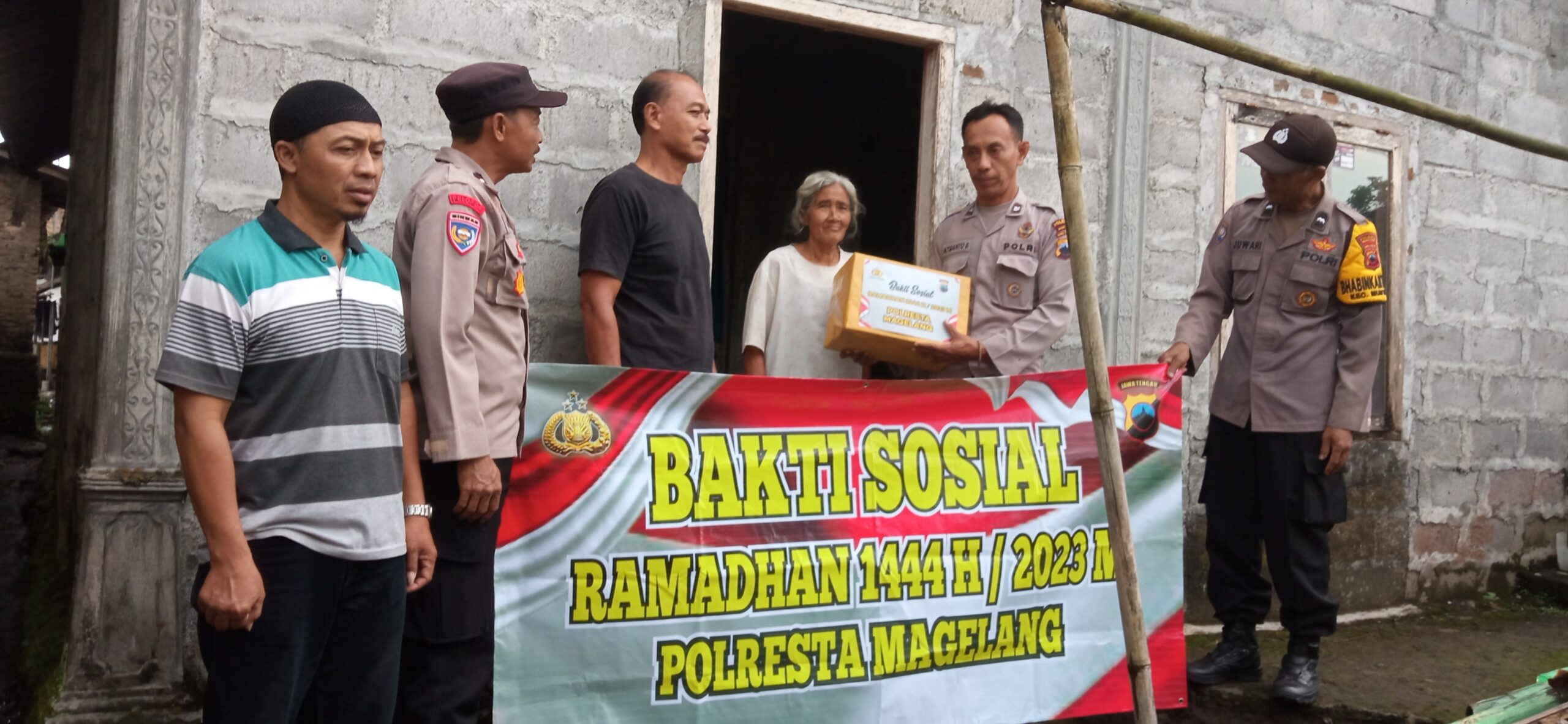 Polisi membagi-bagi paket sembako dengan cara door to door ke warga kurang mampu di Dusun Kutan, Desa Sedayu, Kab. Magelang, Sabtu, 8 April 2023 sore. (Ft. Mohis/HN)