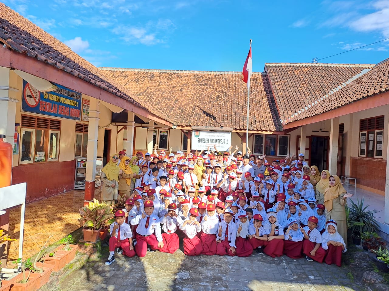 Sementara itu, dari pihak sekolah yang hadir mendampingi Kapolsek, yakni Kepala SDN Pucungrejo 1, Endang Titisari S.Pd dan dewan guru serta karyawan SDN 1 Pucungrejo, juga dihadiri seluruh pelajar setempat dari kelas satu hingga kelas enam.