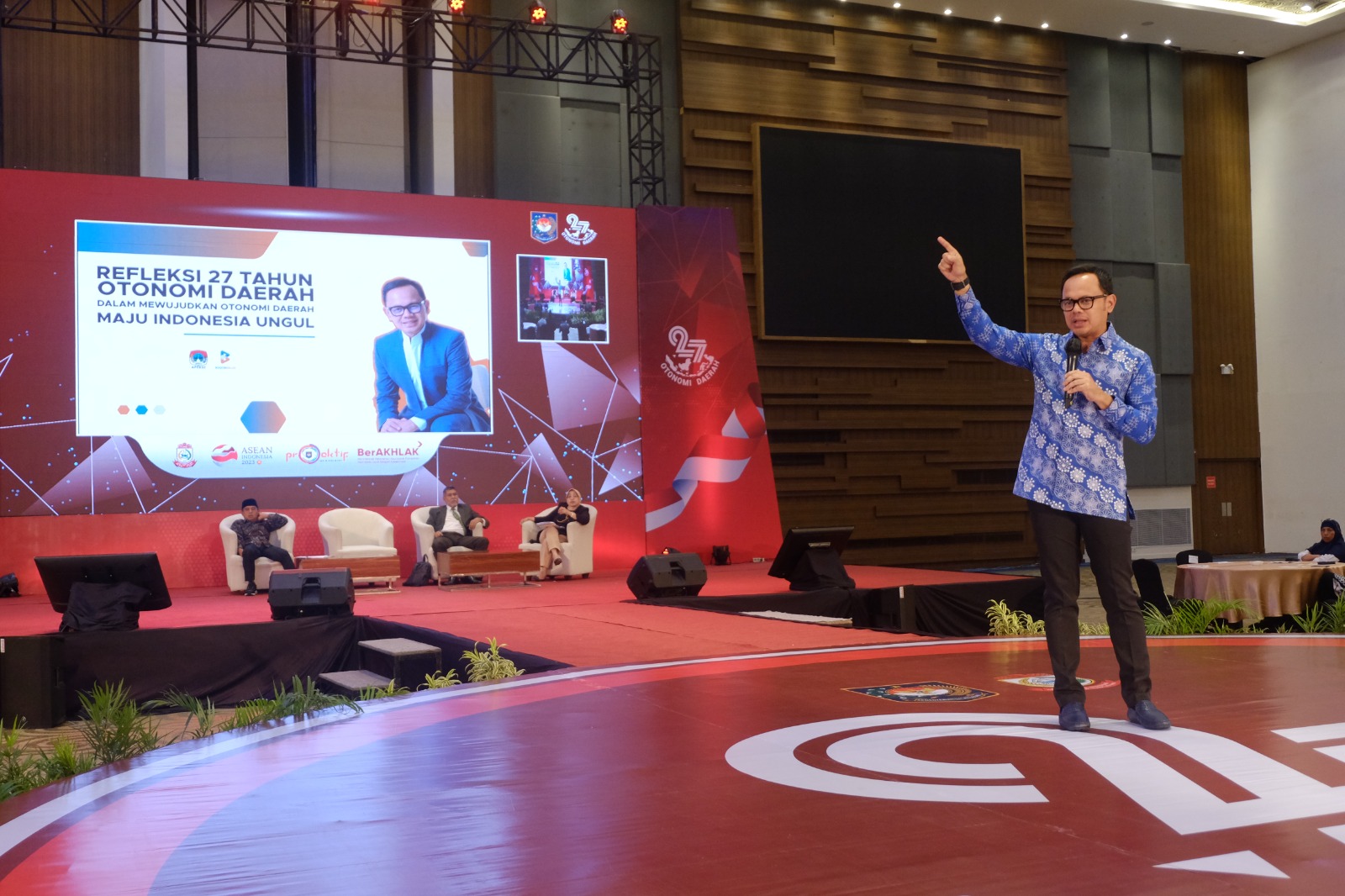 Ketua APEKSI Bima Arya pada Seminar Nasional bertajuk “Refleksi 27 Tahun Otonomi Daerah dalam Rangka Mewujudkan Otonomi Daerah Maju, Indonesia Unggul” di Hotel Four Points, Kamis (13/04).