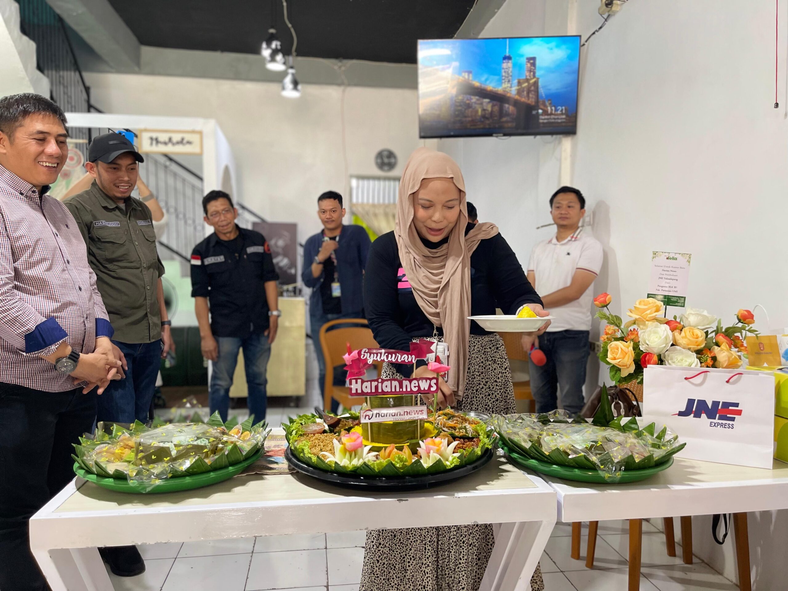 Acara ini tidak hanya menandai hadirnya layanan JNE lebih dekat dengan masyarakat, tetapi juga dirangkaikan dengan syukuran pindah kantor media Harian.News dan Warkop DK10.