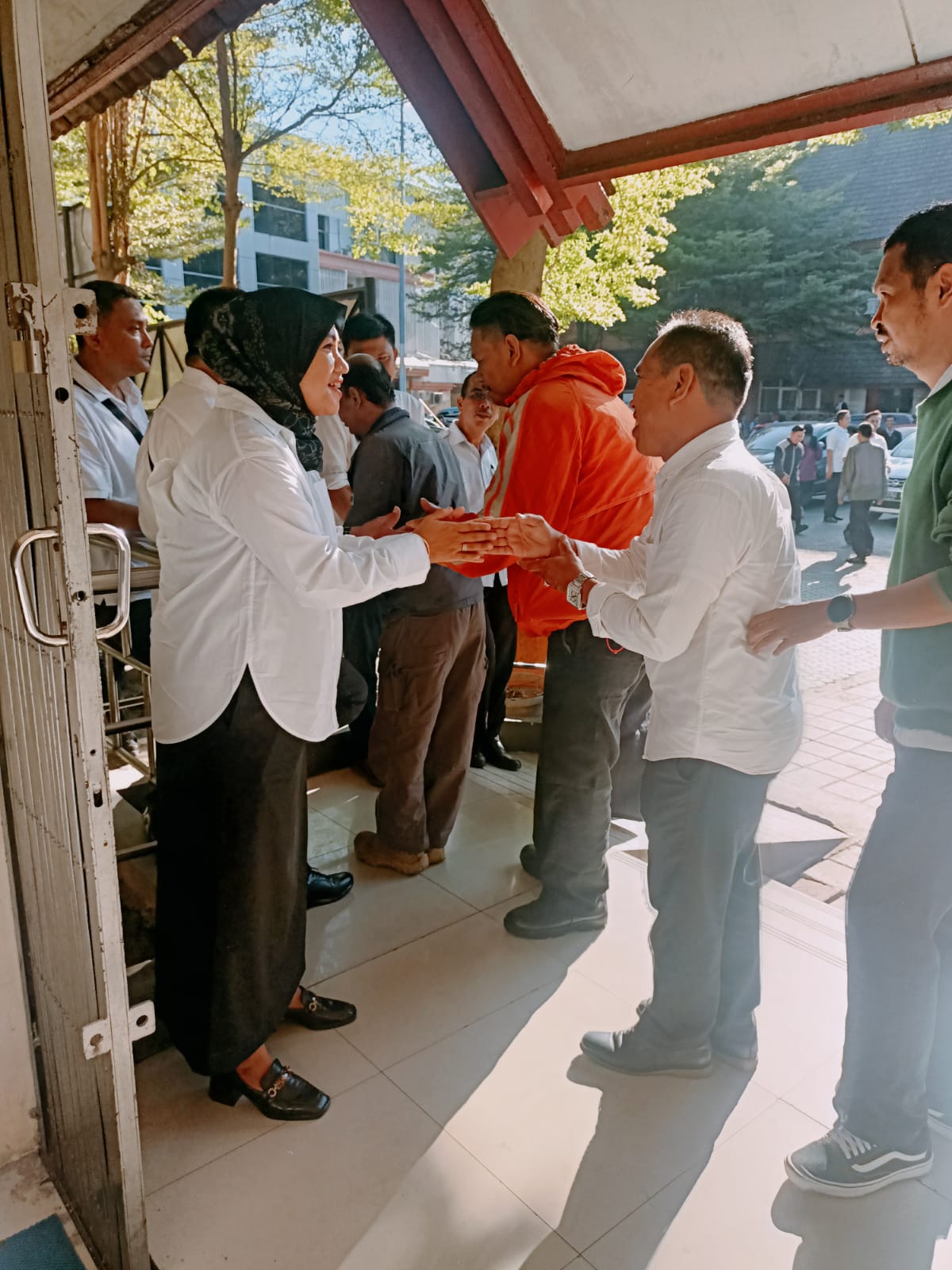 Kadis PU Makassar menyalami pegawai, Rabu (26/4). Dok. Ist