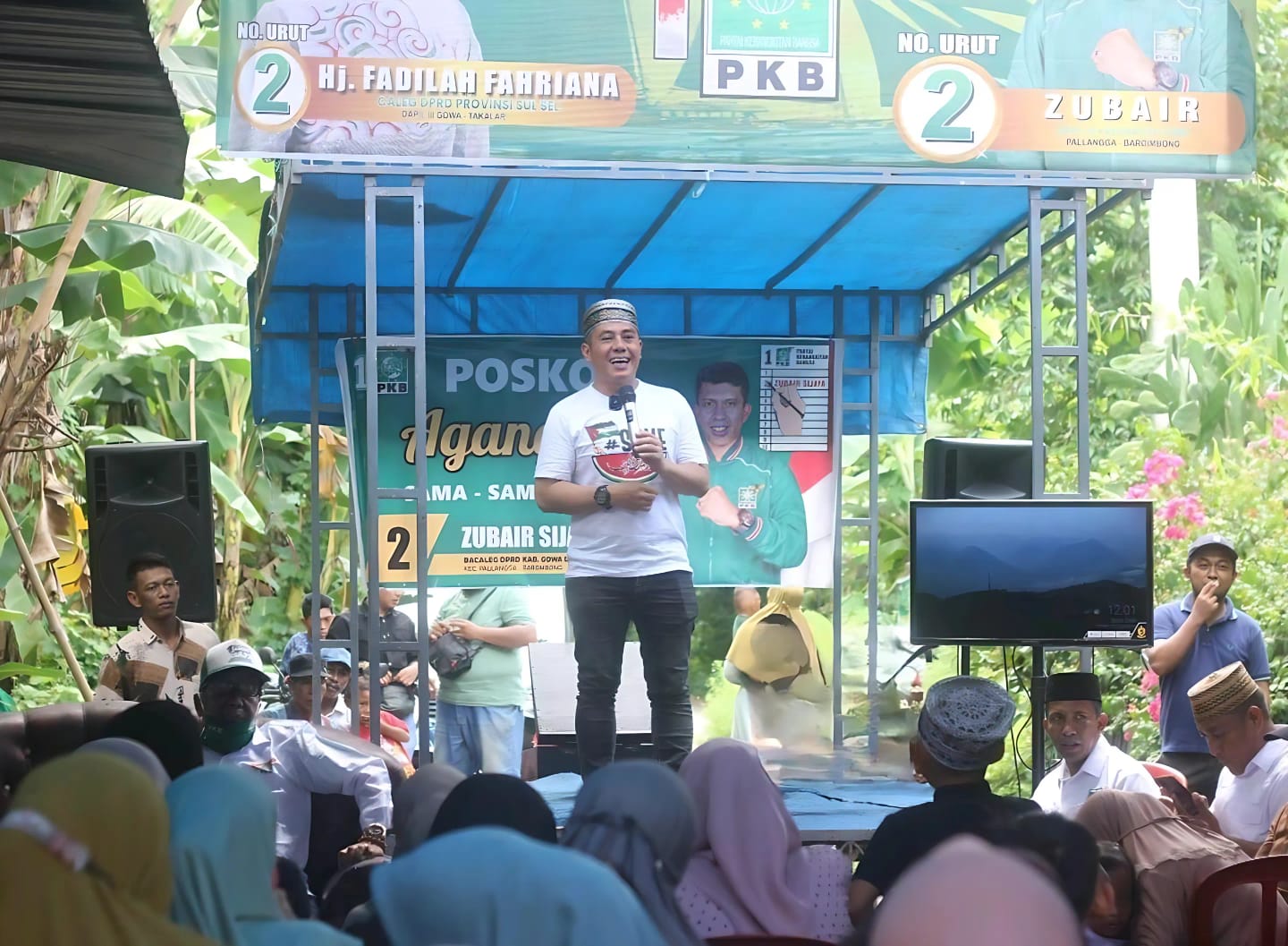 “Untuk presiden kita AMIN nomor satu, DPR RI nomor satu, DPRD Kabupaten (Gowa) dan Provinsi (Sulsel) nomor 2, Zubair dan Ibu Dila,” ucap Deng Ical.