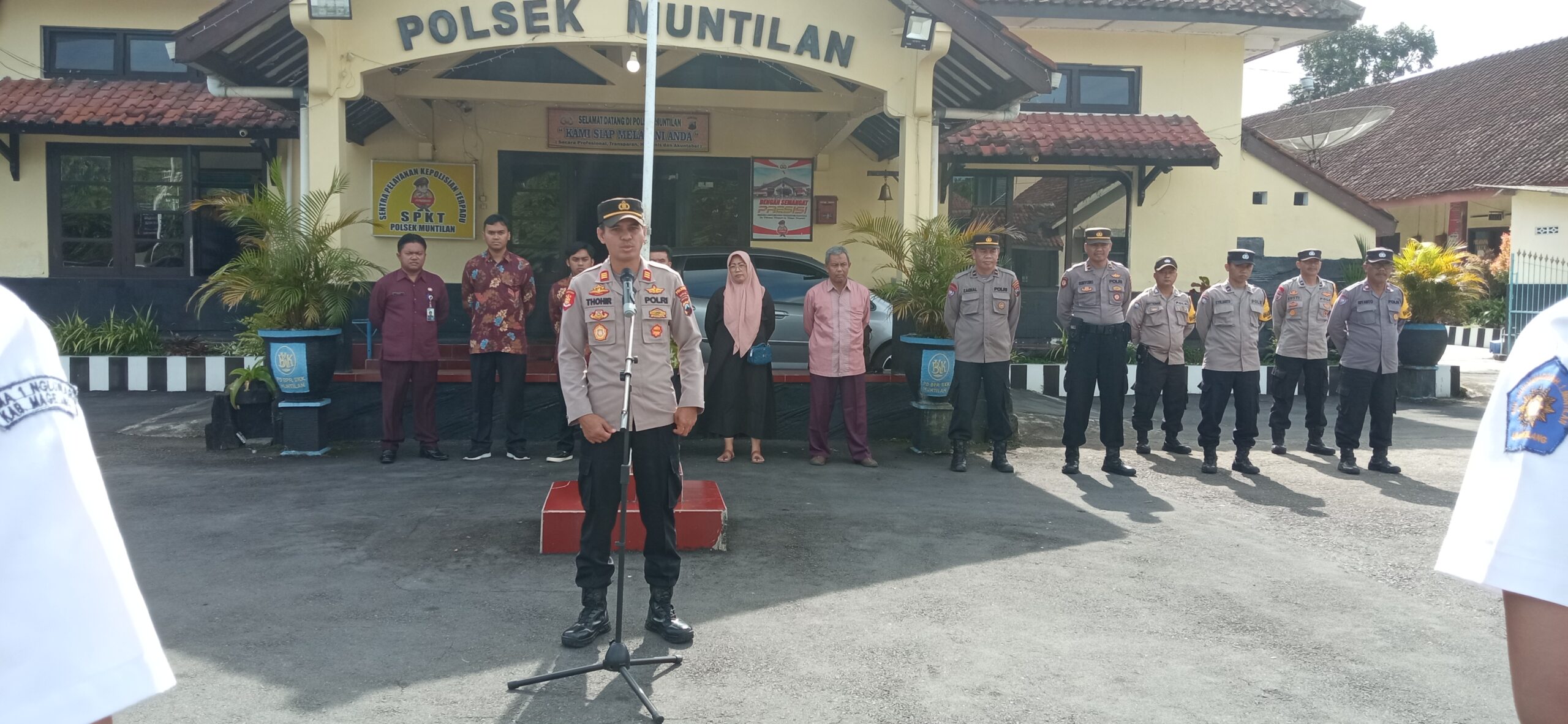 Kapolsek Muntilan pimpin apel pelepasan siswa usai jalani pembinaan di Kapolsek Muntilan. (Ft. Mohis/HN/