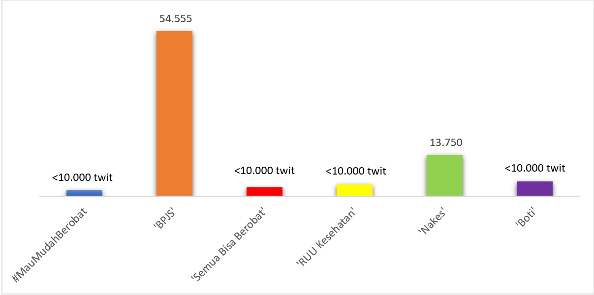 Kata kunci ‘Semua Bisa Berobat’, ‘RUU Kesehatan’, dan #MauMudahBerobat juga menyampaikan pesan yang sama. Warganet yang pro RUU Kesehatan menyebut peraturan ini diperlukan untuk memperbaiki SDM Kesehatan, layanan kesehatan yang memiliki jangkauan yang luas, dan penyerapan aspirasi masyarakat yang luas dalam pembahasan RUU Kesehatan.