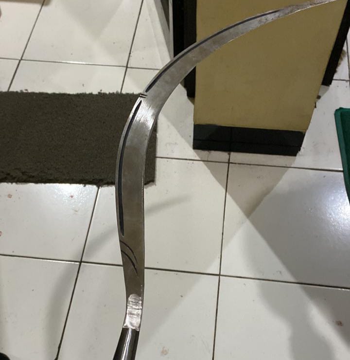 Salah satu celurit yang berhasil diamankan polisi dari tangan pelaku tawuran antar pelajar di Wilayah Mungkid, Magelang, Jumat malam. (Ft. Mohis/HN)