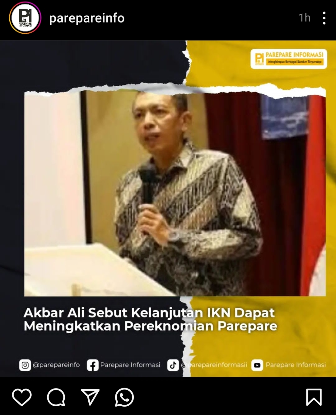 HARIAN.NEWS, MAKASSAR – Pj Wali Kota Parepare, Akbar Ali baru-baru ini memaparkan perkembangan ekonomi Kota Parepare jika Ibu Kota Nasional (IKN) bakalan meningkat.