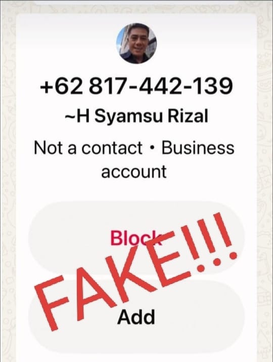 Tenaga Ahli (TA) Syamsu Rizal MI, Muhammad Subhan atau akrab disapa Cube, mengimbau masyarakat agar tidak mudah percaya dan segera mengabaikan pesan dari nomor tersebut.